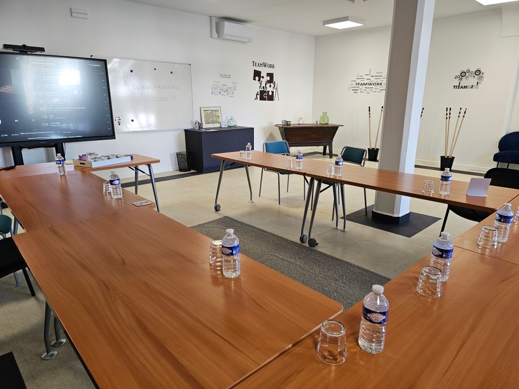 Cette salle d’une capacité de 100 personnes avec connexion Internet est un espace adapté pour les échanges professionnels, les discussions de groupe et les prises de décision ou tous types d’événements. Les équipements incluant tables, sièges, écran dynamique et du matériel de visio-conférence sont modulables selon les besoins.